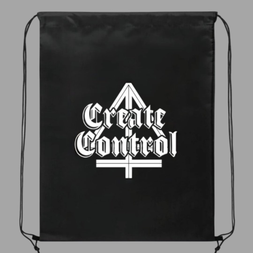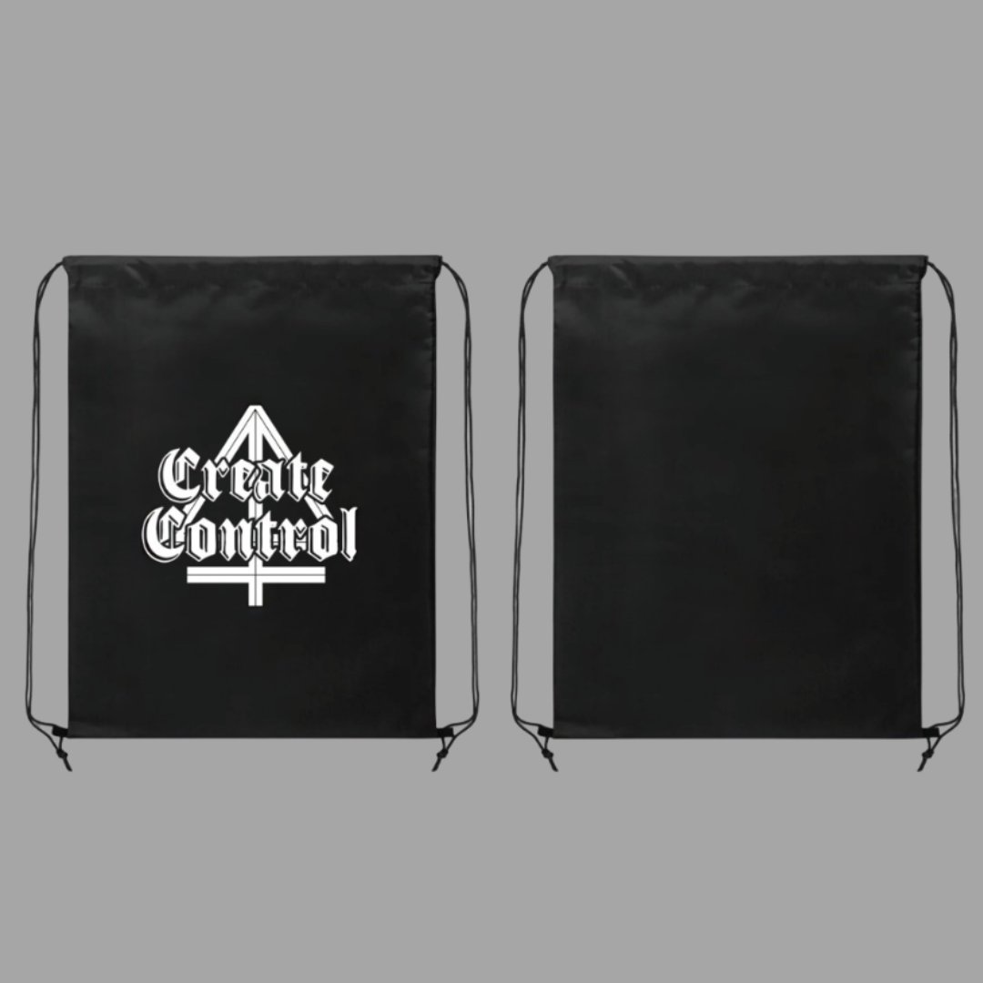 Carry your gear in style with the official Create Control drawstring tote bag — featuring our band logo printed in bold white on a sleek black background.